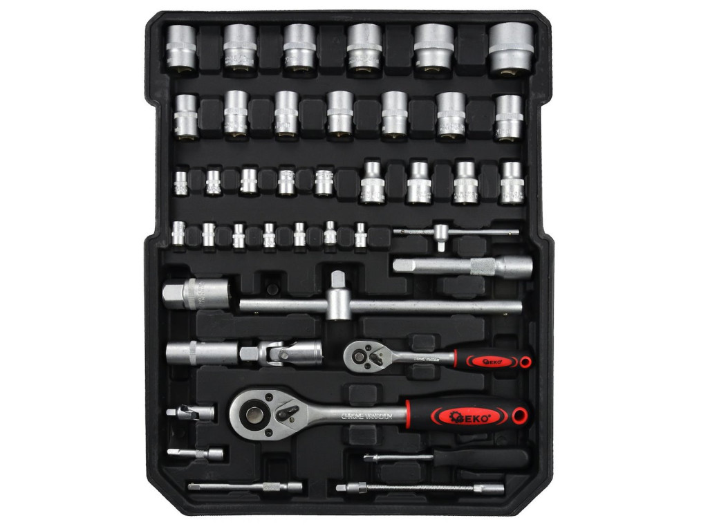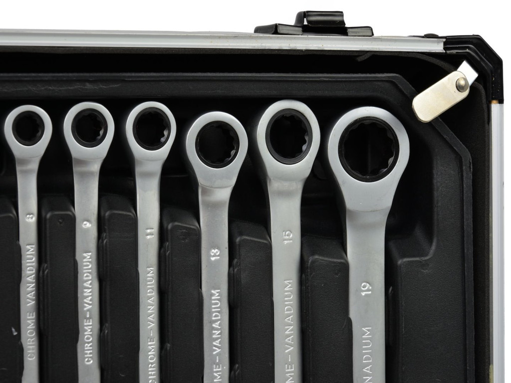 A szerszámok króm-vanádium acélból készültek, amely nagy szilárdságot, kopásállóságot és hosszú élettartamot biztosít. A masszív, alumínium házas koffer zárható kivitelű, a csomag 2 darab kulcsot tartalmaz. A praktikus hordfogantyú megkönnyíti a szállítást, a belső elrendezés pedig átlátható és stabil tárolást biztosít.