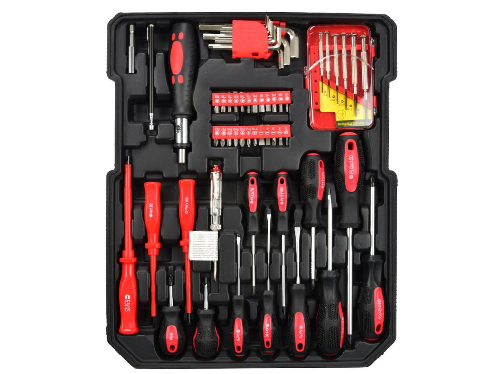 Ez a 187 részes szerszámkészlet komplett, mobil és biztonságosan tárolható megoldást kínál minden általános szerelési, javítási és karbantartási munkához.