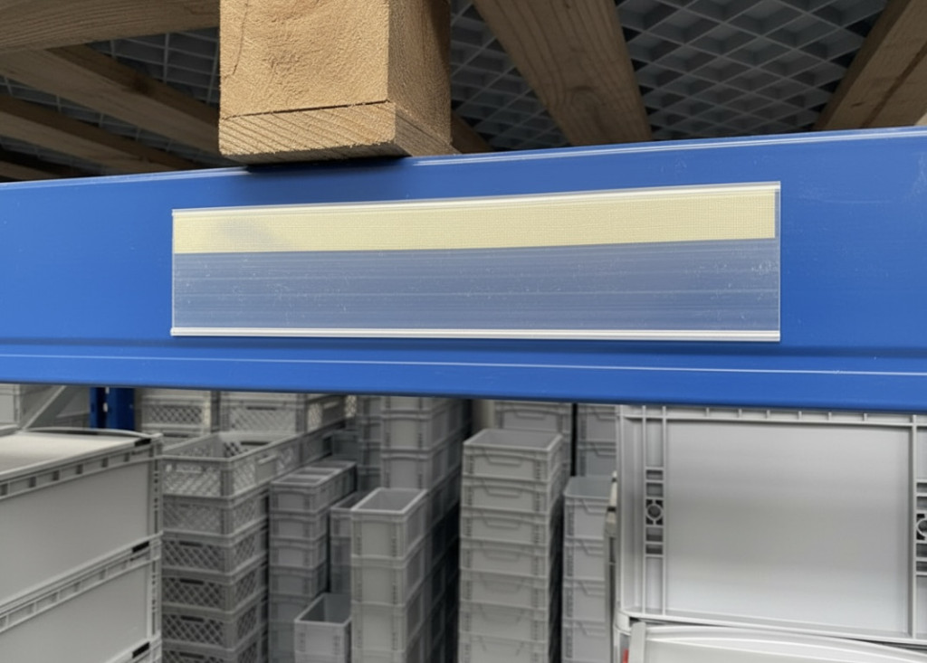 Átlátszó címketartó, különösen alkalmas az euro ládák megjelölésére.