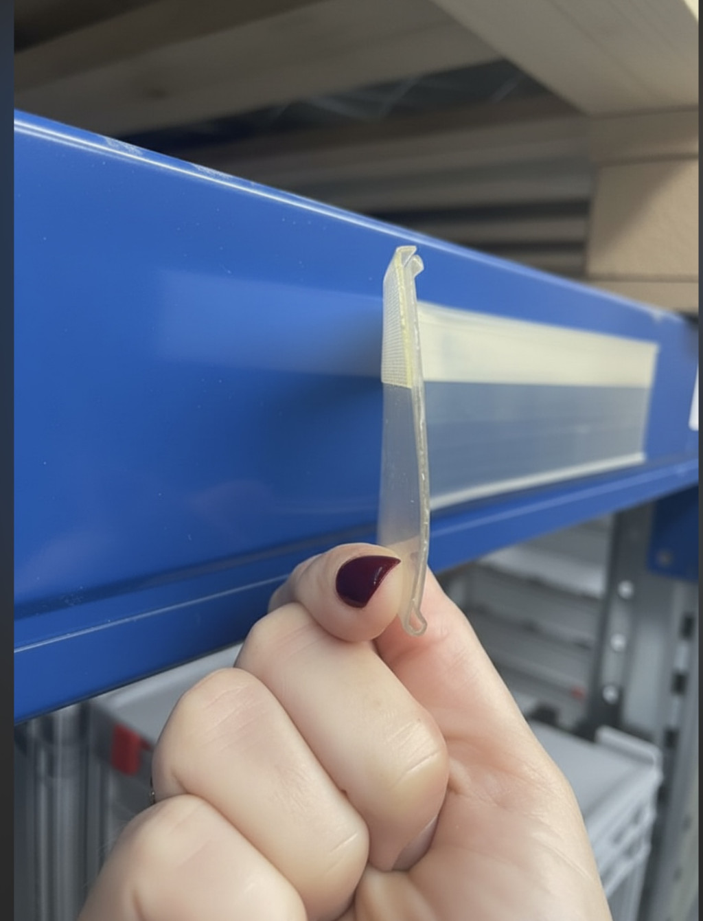 Átlátszó címketartó, ragasztócsikkal a hátulján!