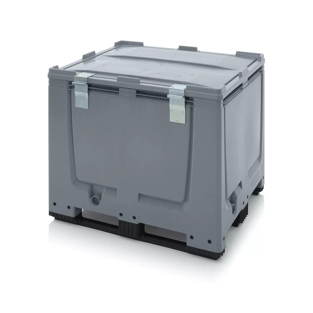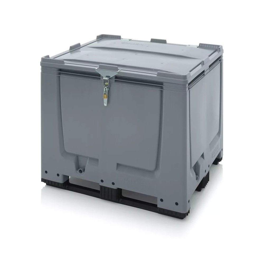 a nagy teherbírású, biztonságos és zárt tárolás ideális megoldása. A 3 hosszanti talppal ellátott, masszív kivitel stabil rakatolást és targoncás kezelhetőséget biztosít. A zárt alj és oldalfalak, valamint a fedél tökéletes védelmet nyújtanak a tárolt anyagoknak por, nedvesség és szennyeződések ellen.