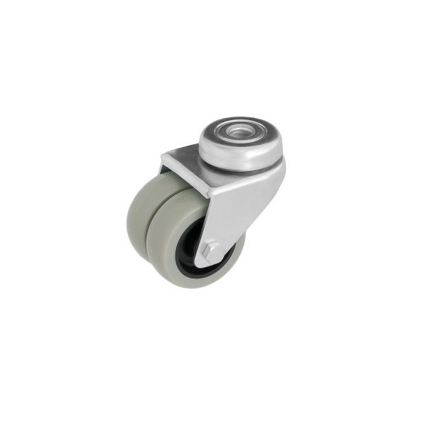 Dupla görgő, PPU kerék poliuretán gumiabronccsal, hátfuratos, önbeálló, 50 mm, 100 kg