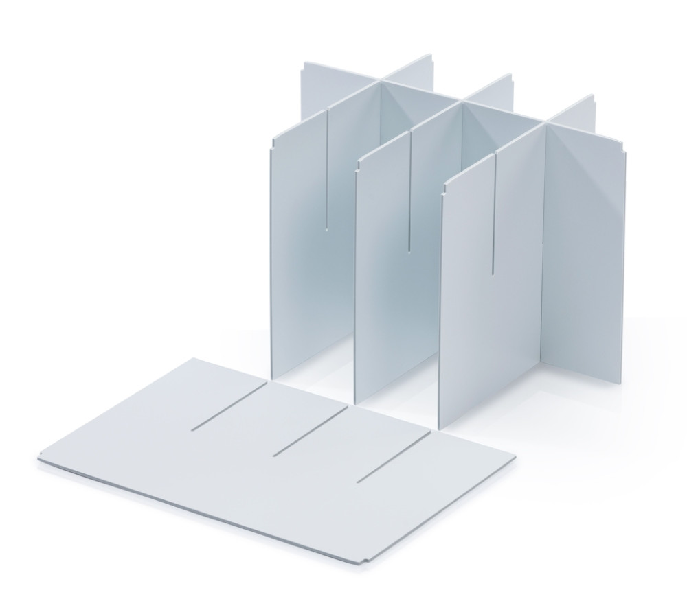 A láda válaszfalak elengedhetetlen elemei a különféle szállított tárgyak rendszerezésének és védelmének. Ezek a praktikus elválasztók különféle anyagok és termékek biztonságos szállítását és tárolását teszik lehetővé. Az elválasztók segítségével tetszés szerint oszthatja szét az Euro ládákat. A válaszfalak előmarott fiókrendszerrel rendelkeznek. Legalább egy hosszú és egy rövid partíció szükséges a partíciók működéséhez.