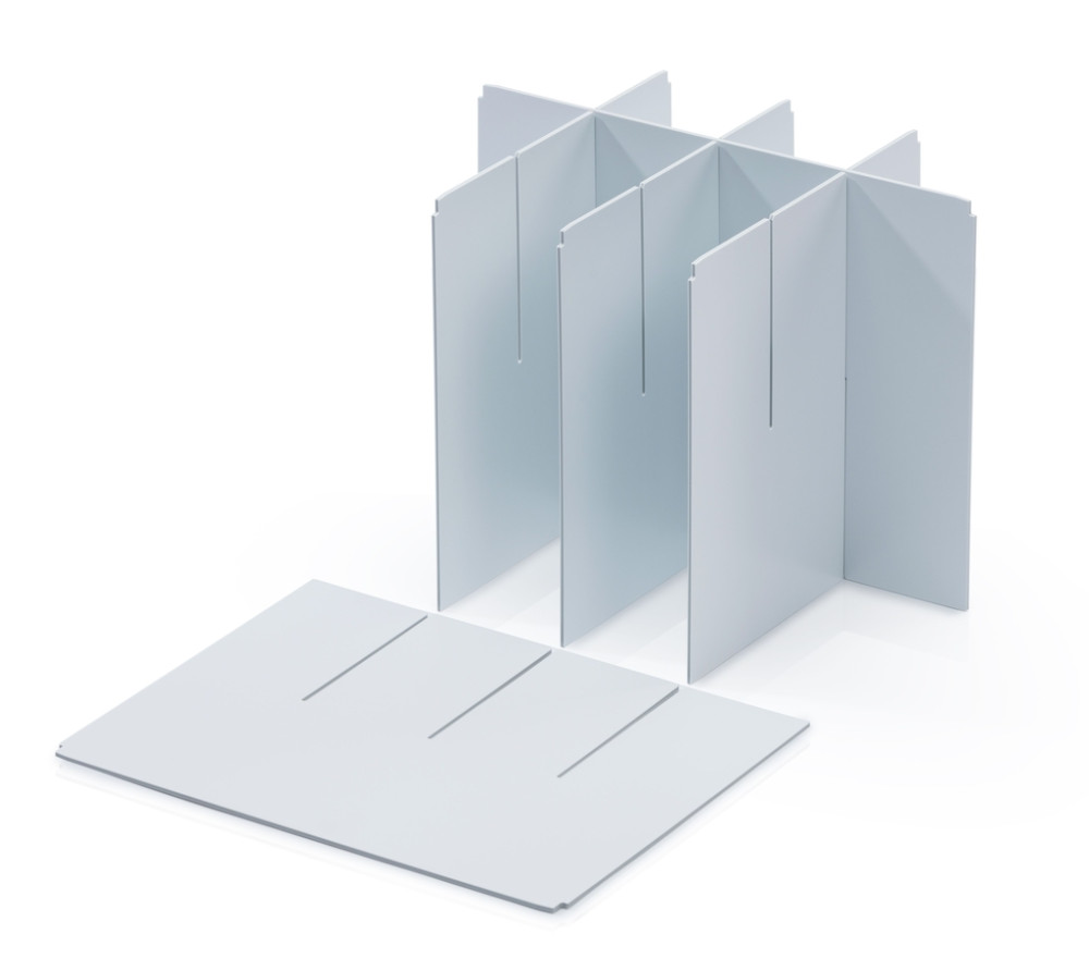 A láda válaszfalak elengedhetetlen elemei a különféle szállított tárgyak rendszerezésének és védelmének. Ezek a praktikus elválasztók különféle anyagok és termékek biztonságos szállítását és tárolását teszik lehetővé. Az elválasztók segítségével tetszés szerint oszthatja szét az Euro ládákat. A válaszfalak előmarott fiókrendszerrel rendelkeznek. Legalább egy hosszú és egy rövid partíció szükséges a partíciók működéséhez.