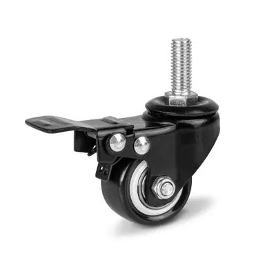 Fekete Acélfelnis görgő, csapos, forgó-fékes, PVC futófelülettel, 40 mm