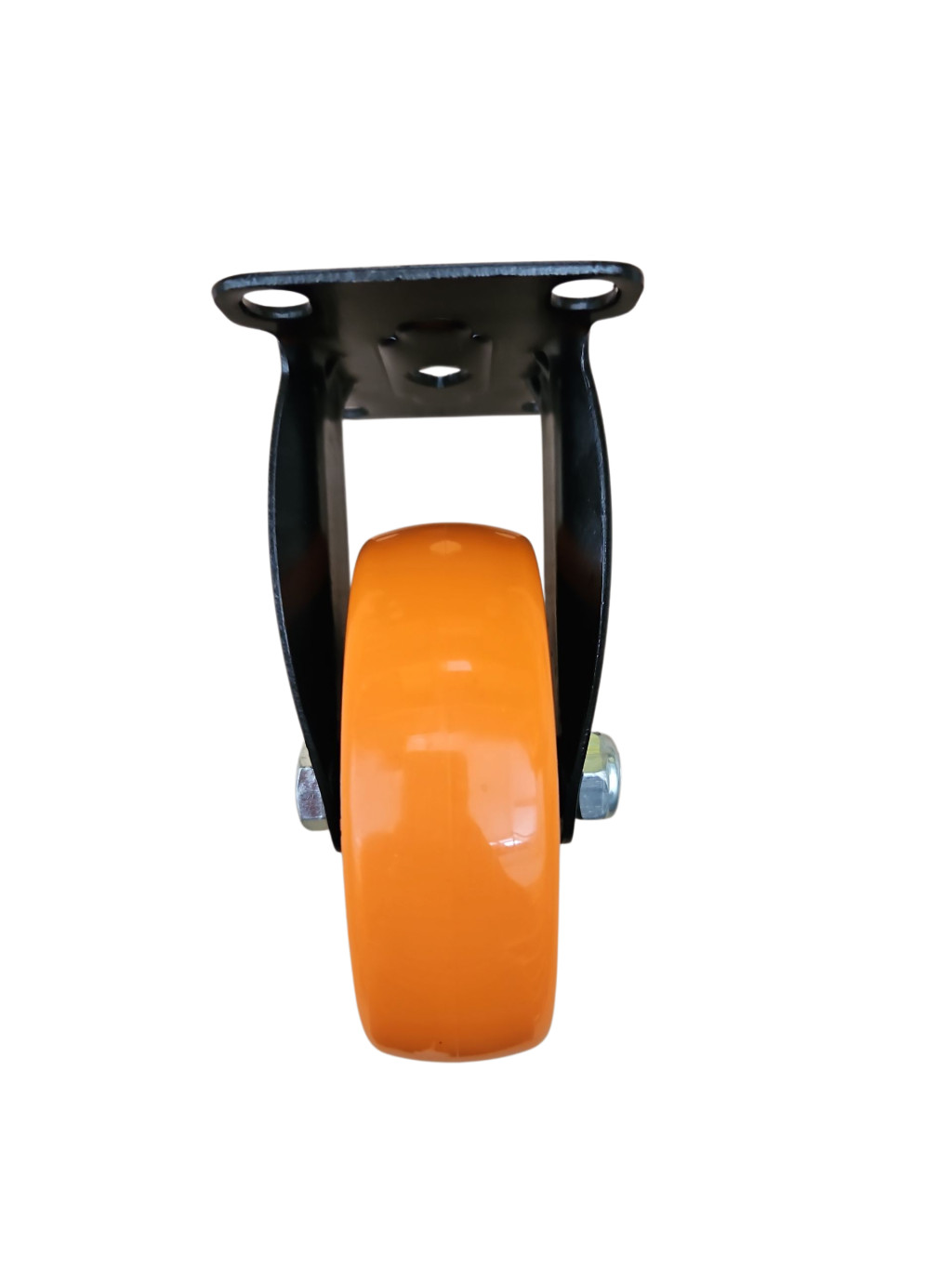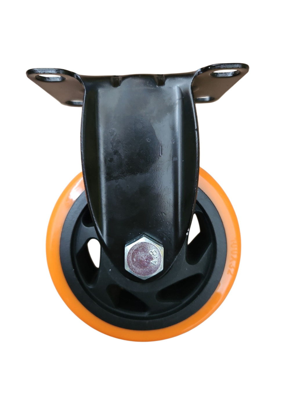Polipropilén futófelülettel, acélfelnis kerék, talplemezes rögzítéssel, fix villával.