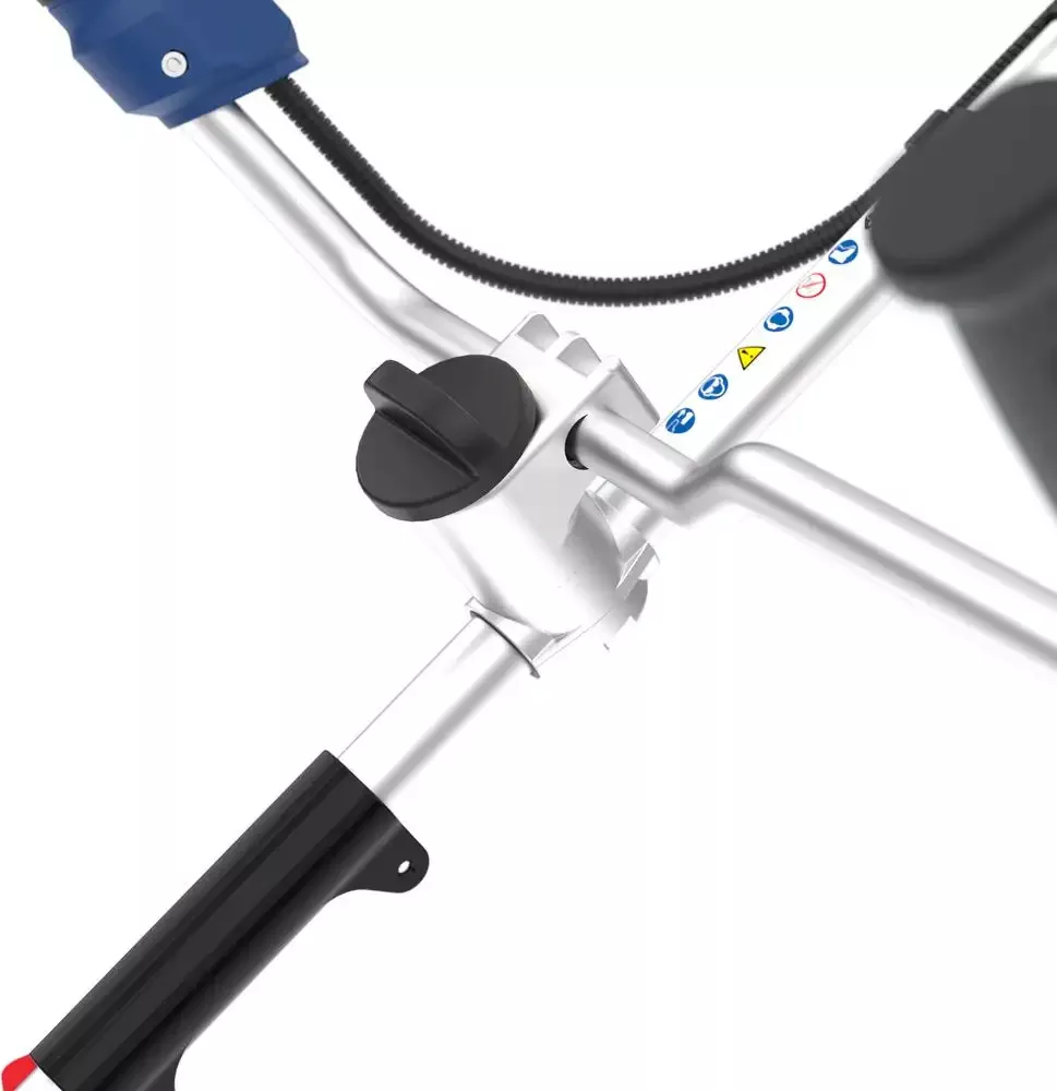 Az állítható, alacsony rezgésű kétkezes multifunkciós fogantyú stabil fogást és jobb irányíthatóságot ad munka közben. A puha markolat növeli a komfortot, a mellékelt hordozószíj pedig segít a terhelés egyenletesebb elosztásában. Az osztott tengelynek köszönhetően a bozótvágó egyszerűbben szállítható és helytakarékosabban tárolható.