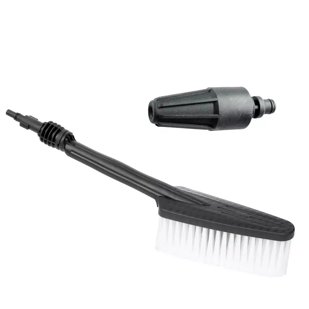 A csomag tartalmazza a magasnyomású tisztítót, az 5 méteres nagynyomású tömlőt, a magasnyomású pisztolyt lándzsával, a Vario fúvókát, a szennyeződésvágót és a háromszögletű kefét, így többféle tisztítási feladatra azonnal bevethető.