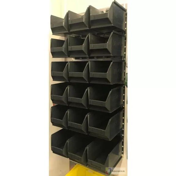 Nagy teherbírású függőlegesen réselt, horganyzott fém lemez, 18 db MH4 dobozzal.