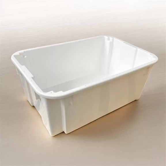 Méretben megegyezik a szüretelő /tejipari ládával.