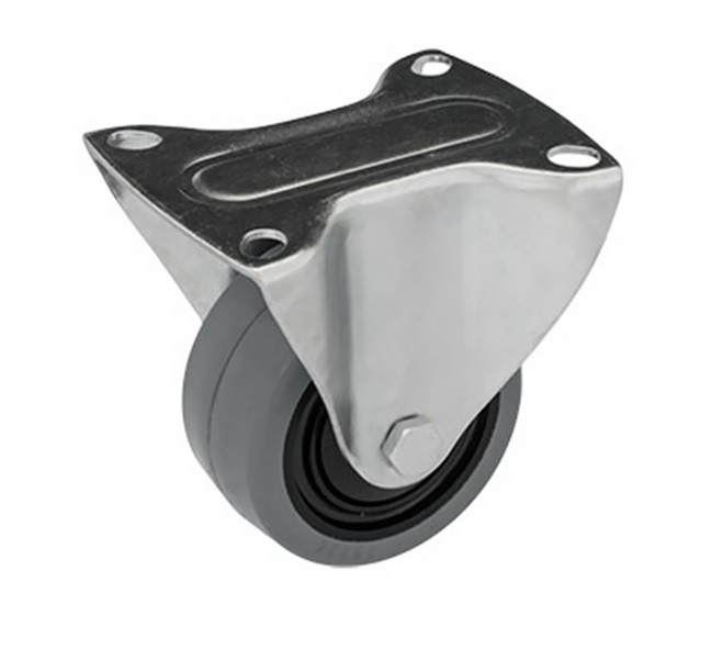 Intézményi közepes teherbírású görgő, szürke nyommentes, talpas, fix, elasztikus gumi, 100 mm