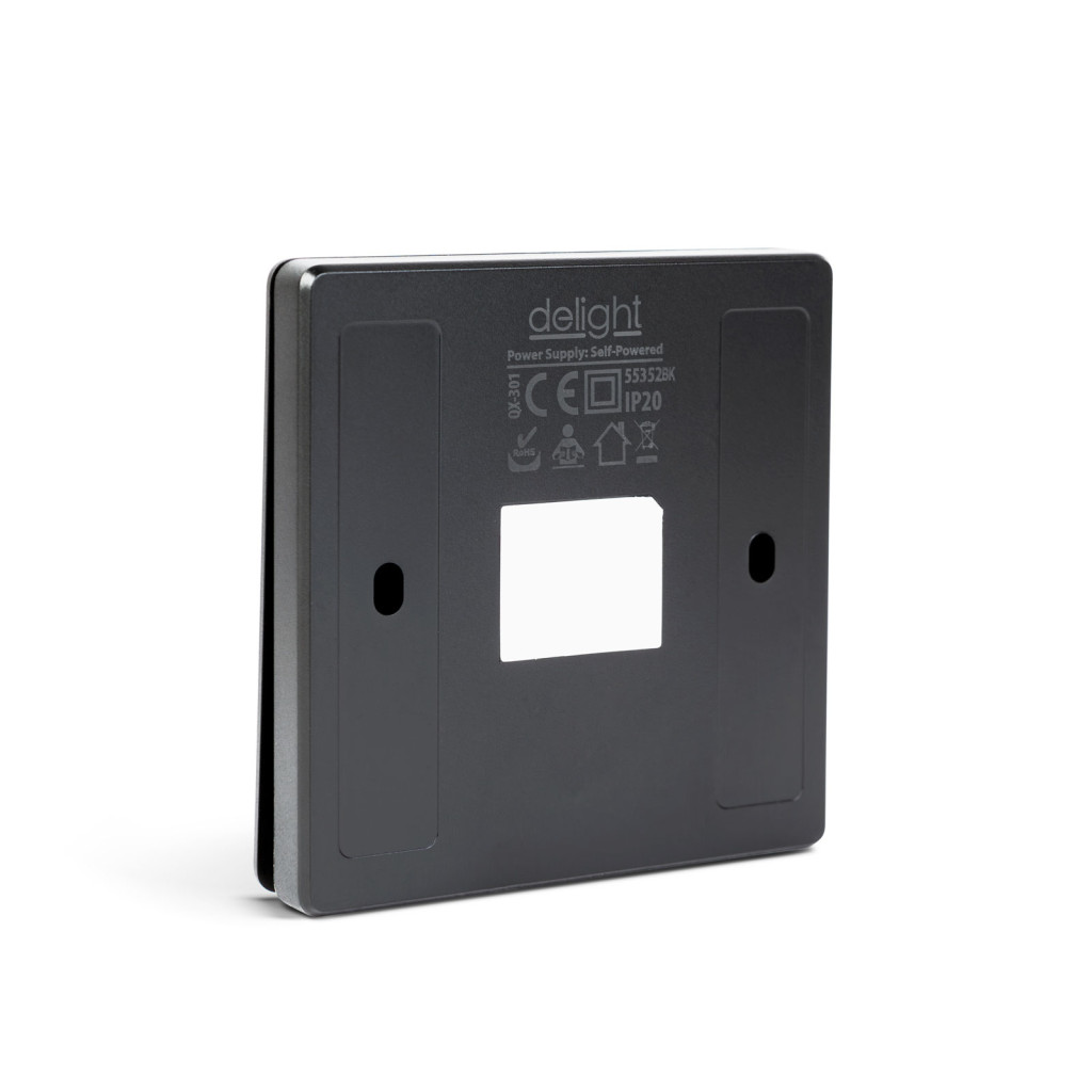 A Delight márka legújabb vezeték nélküli, KINETIC kapcsolócsaládjának fali kapcsolója, amely kábelek és elemek nélkül használható, ezáltal könnyen kapcsolhatóvá válik a vezérlőhöz csatlakoztatott fogyasztó. A termék használatához a Delight kínálatában megtalálható 55356 vagy 55357 vezérlőegység valamelyikének megvásárlása is szükséges! Az egységenkénti vásárlás lehetővé teszi a moduláris felépítést, így mindenki a saját igényeinek megfelelő kapcsolóhálózatot hozhatja létre.