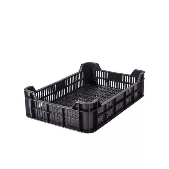 A 60 x 40 cm tanúsított méretek ideálisak raklapon történő szállításhoz és kezeléshez. A ládák újrahasznosított anyagból készülnek. Zsír-, gyanta- és lúgálló.