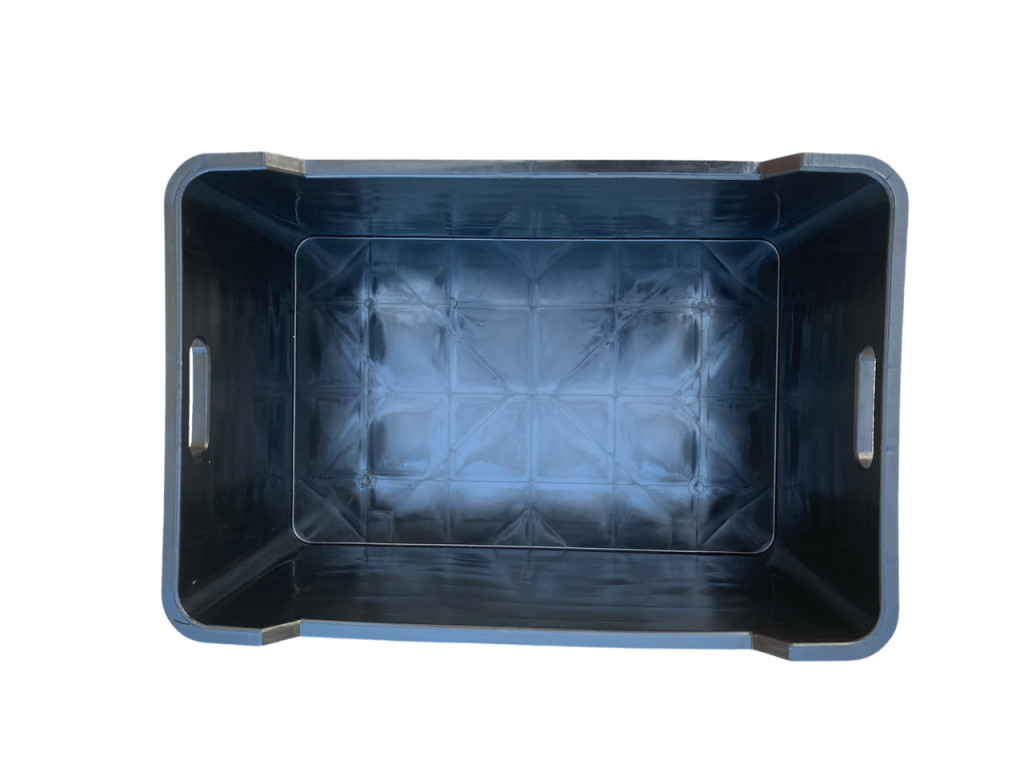 A 60 x 40 cm tanúsított méretek ideálisak raklapon történő szállításhoz és kezeléshez. A ládák újrahasznosított anyagból készülnek. Zsír-, gyanta- és lúgálló.