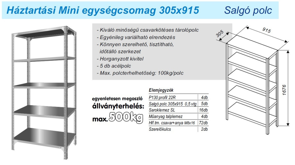 Dexion kompatilbis, mini salgó polcok, amelyek erős acél lemezből készülnek a maximális minőség érdekében. A felületük lehet festett vagy horganyzott.