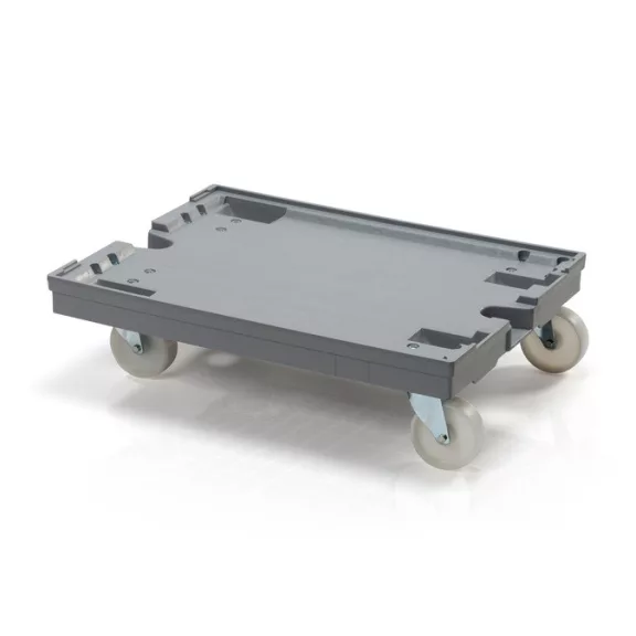 80 x 60 cm-es szállító alvázunk ideális nagyobb rakományok szállítására. A területet több kis láda vagy egy 80 x 60 cm-es euroláda is használhatja. A tetején lévő bemélyedések lehetővé teszik az alváz egymásra helyezését. Kiváló minőségű poliamid kerekek 4 kormányozható kerékkel.