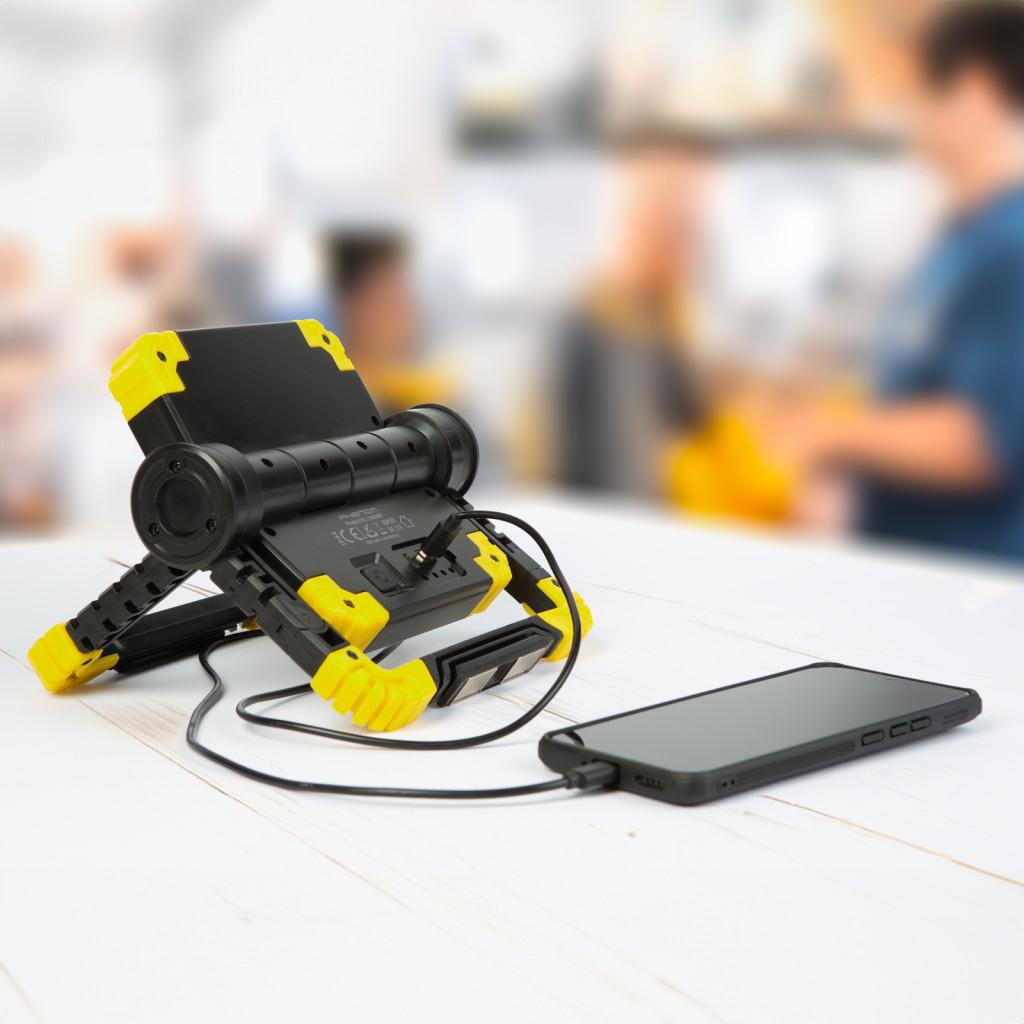 Phenom termékcsalád minőségi új reflektora, amely nélkülözhetetlen kelléke lehet műhelyeknek, építkezéseknek vagy akár háztartásának. A nagy teljesítményű 16 W-os COB LED ~1000 Lumen fényerővel akár 6 órán keresztül világítja be a teret. A beépített 5V-os micro-USB port megfelelő tápellátást biztosít például mobiltelefonja feltöltéséhez.