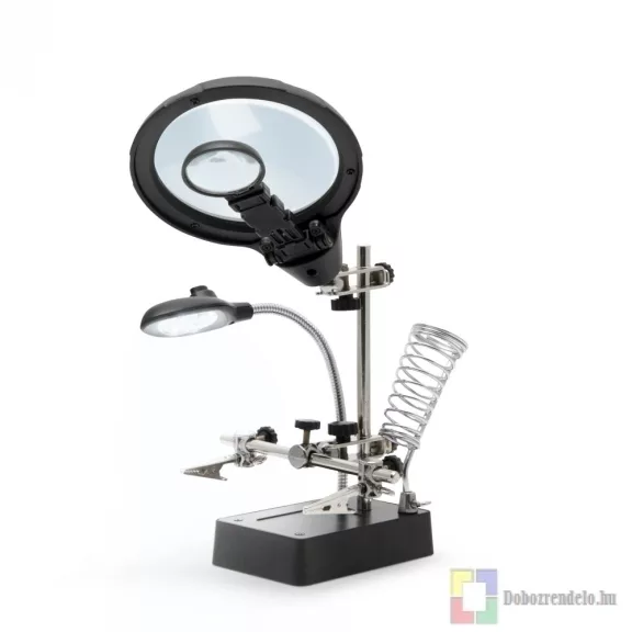 Rendkívül jól használható forrasztás-technikában, elektronikában, modellezéshez, illetve otthoni barkácsoláshoz. Segítségével az apróbb tárgyak, panelek könnyedén rögzíthetőek ezáltal szabadon hagyva mindkét kezünket. A tartókarok minden pontja 360°-ban mozdítható és rögzíthető. A talp masszív alapot, az erős krokodilcsipeszek pedig stabil tartást biztosítanak a munkadarabnak, melyen a többszörös nagyítású torzításmentes üveglencsés nagyító segítségével a legaprólékosabb műveletek is elvégezhetőek.