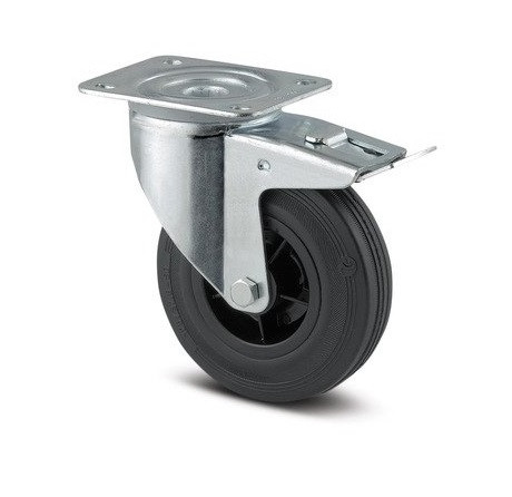Tömörgumis, fékes, műanyagfelnis görgő, önbeálló villában, 200mm