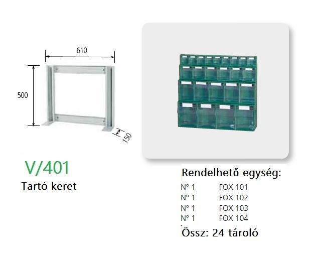 FOX moduláris műanyag tároló dobozokhoz készült FÉM tartó szerkezet, amely falra vagy akár a padlóra is rögzíthető.