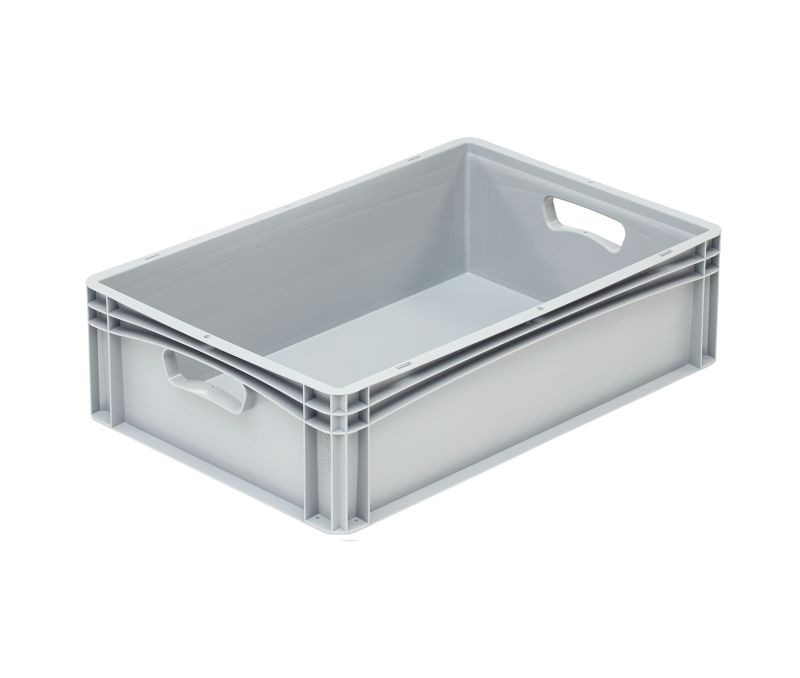 Basicline Euro láda 600x400x170 mm, alja és oldala zárt, nyitott markolat, Szürke