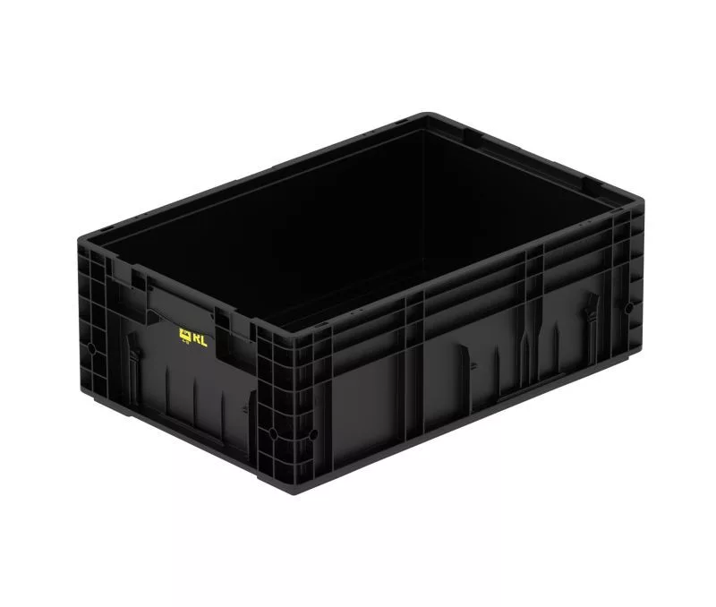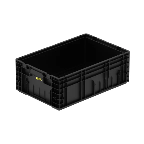 A könnyített, ugyanakkor megerősített konstrukció kedvező saját tömeget és jó kezelhetőséget biztosít. A zárt, kagylós markolat ergonomikus és biztonságos kézi mozgatást tesz lehetővé. A fekete színű kivitel jól illeszkedik az ipari környezetekhez, a láda pedig euroraklap-kompatibilis kialakításának köszönhetően kiválóan alkalmazható gyártásközi tárolásra, szállításra és automatizált logisztikai rendszerekben.