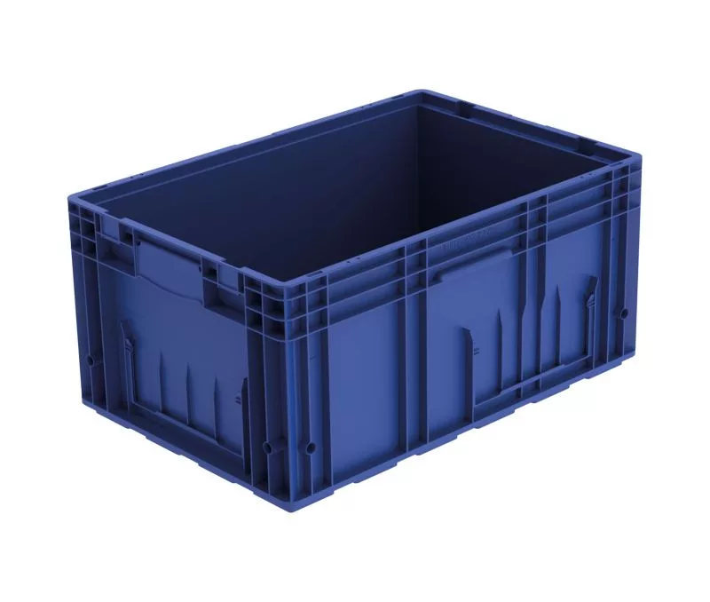 A zárt, kagylós markolat ergonomikus és biztonságos kézi kezelést tesz lehetővé. A masszív kialakítás hosszú élettartamot garantál intenzív igénybevétel mellett is. A kék színű kivitel illeszkedik a VDA szabványú rendszerekhez, a láda euroraklap-kompatibilis kialakításának köszönhetően pedig ideális választás gyártásközi tároláshoz, szállításhoz és automatizált logisztikai környezetben történő alkalmazásra.
