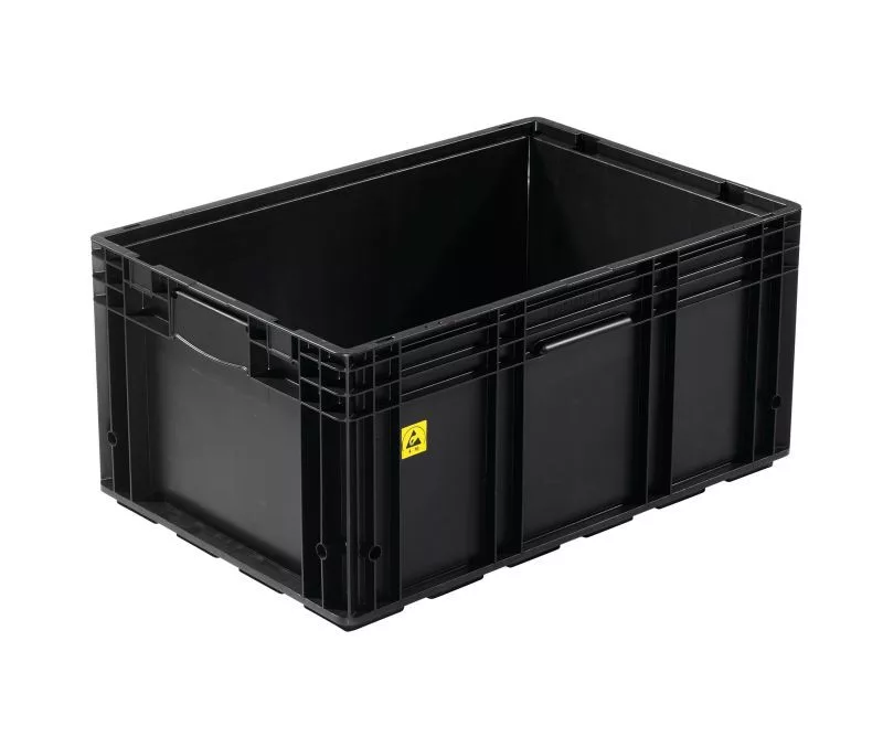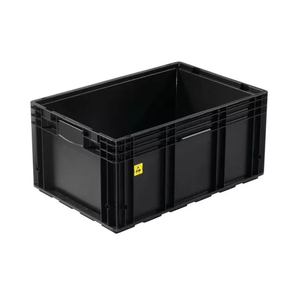 A zárt, kagylós markolat ergonomikus és biztonságos kézi kezelést tesz lehetővé még teljes terhelés mellett is. A masszív kialakítás hosszú élettartamot garantál intenzív, mindennapi használat során. A fekete színű kivitel jól illeszkedik az ipari környezetekhez, a láda pedig euroraklap-kompatibilis kialakításának köszönhetően kiválóan alkalmazható gyártásközi tárolásra, szállításra és automatizált logisztikai rendszerekben.