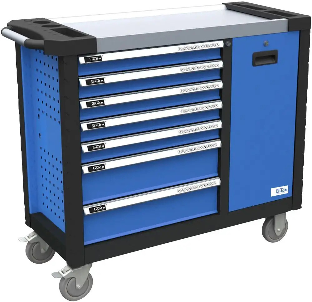 A GWPV 7/1 Premium műhelykocsi lehetőséget biztosít arra, hogy szerszámait 7 darab, golyóscsapágyas, teljes kihúzású fiókban biztonságosan tárolja. A kocsi egyik legnagyobb előnye a szokatlanul tágas függőleges kihúzható egység, amely egy fiókot és egy külön perforált szerszámtartó falat is tartalmaz, mindezt külön zárral biztosítva, így ideális egy átlátható, rendszerezett tárolási megoldáshoz.