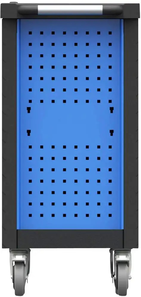 A biztonság és stabilitás terén is meggyőző: az élvédők, a központi zárás 2 kulccsal, valamint a két forgókeréken elhelyezett rögzítőfékek gondoskodnak arról, hogy minden a helyén maradjon, még a műhelykocsi mozgatása közben is. Az oldalfalak szabványos perforációja számos további bővítési lehetőséget kínál, például extra szerszámtartók felszereléséhez.