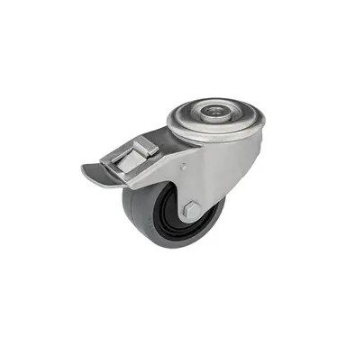 Intézményi közepes teherbírású  szürke, hátfuratos, forgó-fékes, elasztikus gumi, 125 mm