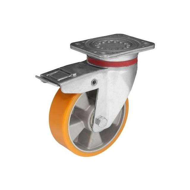 Alumínium forgó Kerék Pur Futófelülettel 200 mm, 800 kg teherbírás, talpas forgó-fékes