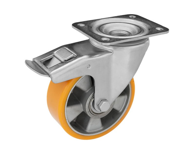 Alumínium forgó-fékes Kerék Pur Futófelülettel 125 mm, 300 kg teherbírás, talpas felfogatás
