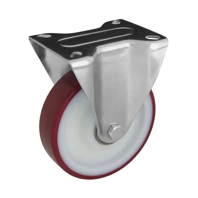 Poliuretán futófelülettel, talplemezes, fix, horganyzott villába szerelve, 150 mm, 400 kg teherbírás